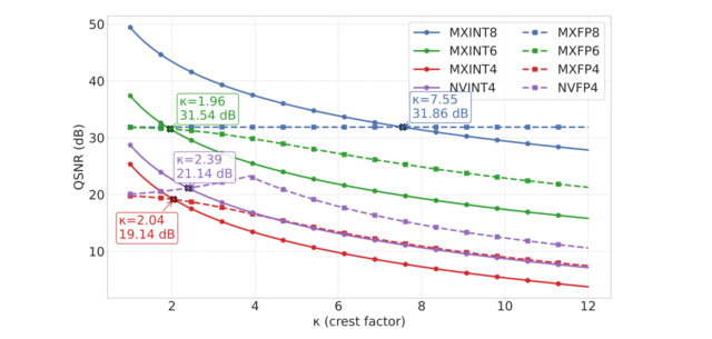 - INT v.s. FP: A Comprehensive Study of Fine-Grained Low-bit Quantization Formats (https://arxiv.org/abs/2510.25602). A comprehensive study on fine-grained, low-bit quantization formats challenges the current industry shift toward floating-point (FP) formats. The authors provide an in-depth analysis of quantization error using both theoretical Gaussian data and experimental training tensors, revealing a critical crossover point: floating-point formats are preferable for handling the high crest factors typical of coarse-grained quantization, whereas integer formats excel when crest factors are low, a condition common in fine-grained, block-wise quantization. Validating this insight across 12 diverse LLMs for direct-cast inference, the experiments consistently conclude that MXINT8 is superior to MXFP8 in accuracy and that NVINT4 can surpass NVFP4 when paired with outlier suppression techniques like Hadamard rotation. Furthermore, training experiments conducted with 1B and 3B Llama-3-style models demonstrate the superiority of MXINT8 over MXFP8, achieving nearly the same average accuracy across six common-sense reasoning tasks as standard BF16 training. The code: https://github.com/ChenMnZ/INT_vs_FP