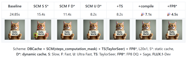 - CacheDiT: A PyTorch-native and Flexible Inference Engine with Hybrid Cache Acceleration and Parallelism for 🤗 DiTs (https://github.com/vipshop/cache-dit). It provides a unified cache API that supports features like automatic block adapters, DBCache, and more, covering almost all Diffusers' DiT-based pipelines. DBCache is a training-free Dual Block Caching mechanism inspired by the U-Net architecture. It splits the DiT Transformer block stack into three functional segments: